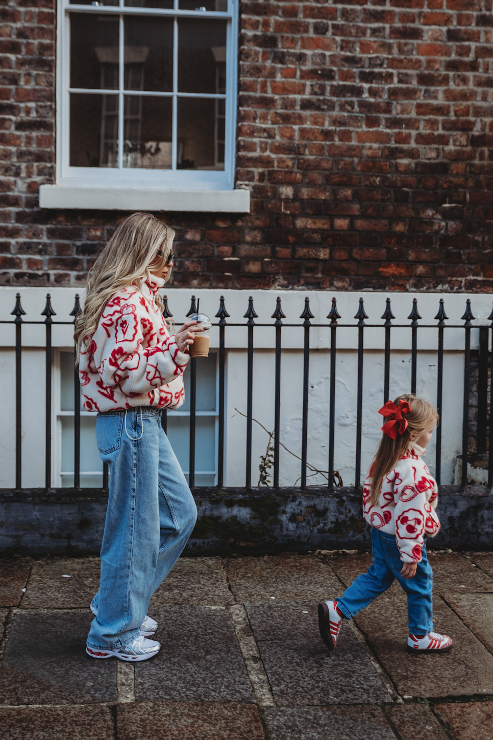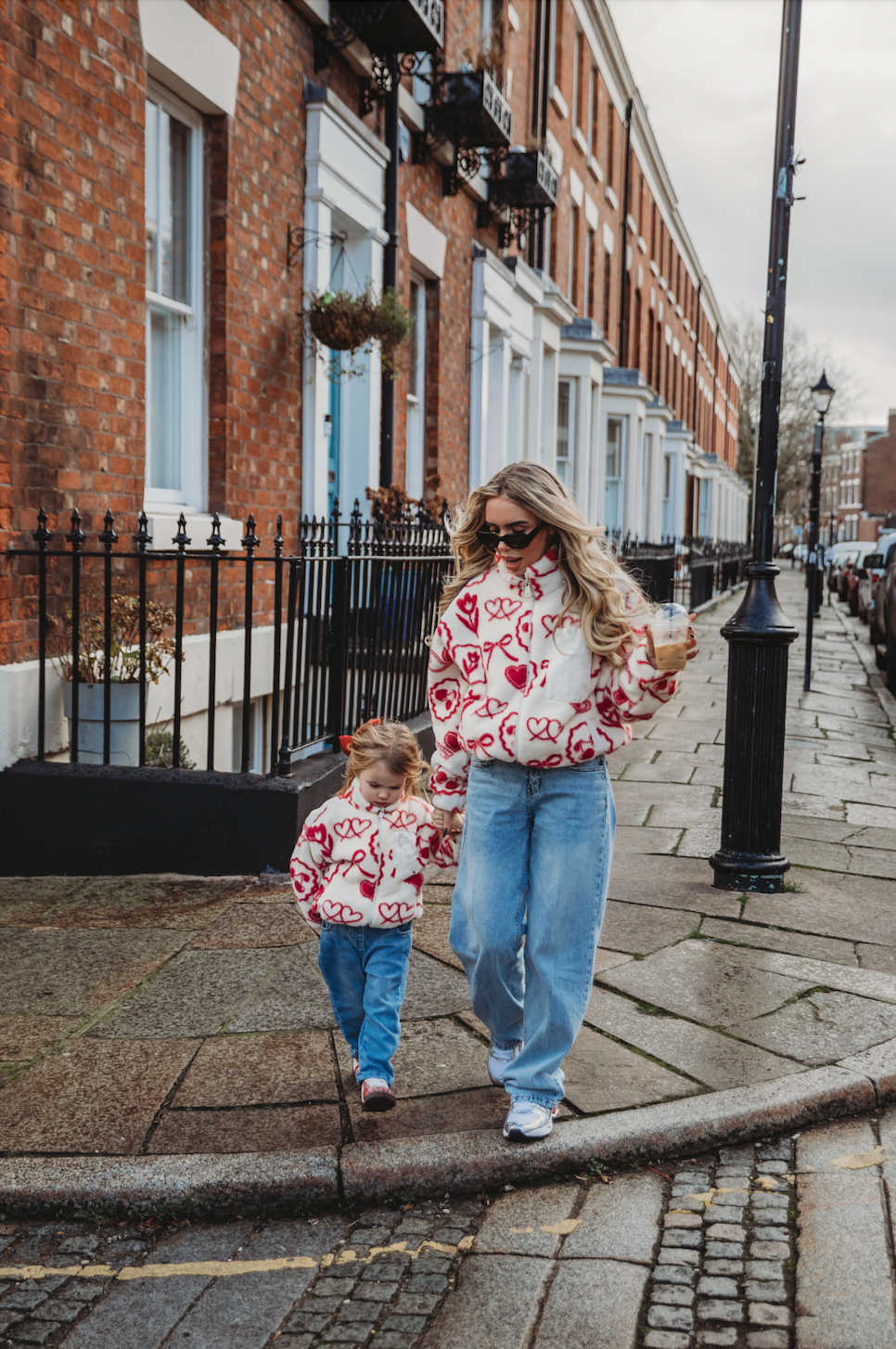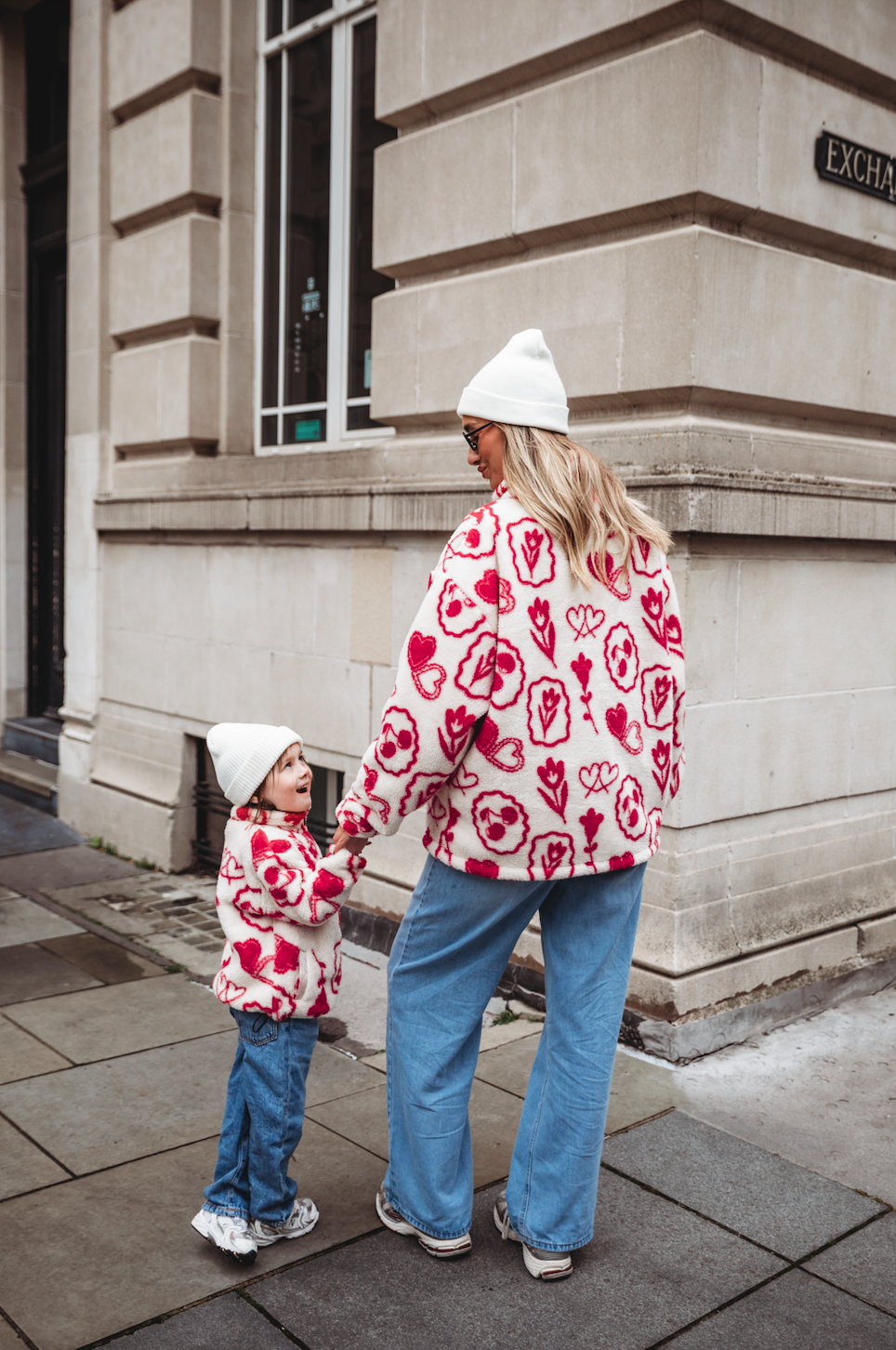 MINI TEDDY FLEECE ZIP JACKET IN RED ICONS